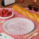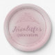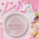 Estos platos de fiesta personalizados presentan un diseño glamuroso de quinceañera. Un borde brillante de purpurina rosa falsa enmarca el plato. El fondo es un diseño de lámina rosa suave con acabado brillante. Un nombre de muestra y un evento están impresos en el centro, que puedes personalizar para incluir tu propio nombre personalizado, título del evento u otro texto. Una tiara de princesa de purpurina rosa adorna la parte superior del área de texto. Es perfecto para un cumpleaños, una despedida de soltera u otro evento especial.