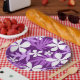 Patrón de tiare en morado. Derechos de autor de Kelly Hironaka, No. 3 Design