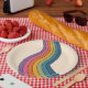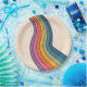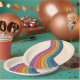 Añada un toque de estilo retro a su fiesta con estas vibrantes placas de papel inspiradas en los años 60 y 70 con rayas gruesas. Ideal para cualquier evento con un tema nostálgico.