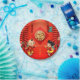 Festividad tradicional china saludando con petardos, nudos suertudos y nubes auspiciosas + papel tigre dorado cortado con ideograma Fu en un círculo (modelo n°01) + dos niños lindos para desear Feliz Año Nuevo. Diseño en placa de papel fiesta. servilleta de papel, tarjeta de saludo estándar, tarjeta plana cuadrada y sobre rojo. Perfecto para el Año Nuevo Chino del Tigre 2022.