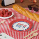 Cuarto sencillo y limpio de platos fiestas de julio. Rojo, blanco y azul con un lindo gráfico en el centro completo con un Tío Sam gorra. Cinco estrellas blancas adornan el borde rojo. En el centro hay una línea desde la Declaración de Independencia para recordar a los invitados -y a nosotros- lo que estamos celebrando.