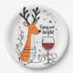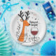 A funny and cheerful Christmas holiday design showcases a reindeer wrapped in festive lights, holding a glass of red wine, surrounded by colorful stars. The handwritten text says, "Tipsy and Bright." This delightful design is available on a variety of products, making it a perfect gift for wine lovers.