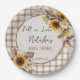 Tócale el corazón girasoles gingham marrón otoño ducha de novia platos de papel monogramados, ducha de novia retro platos de papel personalizados, ducha de novia otoño decoración de mesa personalizada, gingham terroso cottage core ducha de novia platos de papel impresos, ducha de novia de girasoles, ducha de novia de terracota platos de papel, suministros para fiesta de ducha de novia de girasoles