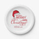 Este diseño cuenta con una alegre placa de papel para Navidades, con un sombrero Santa color de agua, perfecto para cualquier fiesta de vacaciones, tipografía de escritura roja, caligrafía, y un lindo y caprichoso diseño navideño divertido. Ideal para un fiesta de Navidades de familia, un sencillo diseño minimalista y divertido.