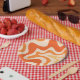 Plato De Papel Tones Naranjas Tangerinos Líquidos Swirl Retro Vib