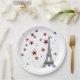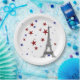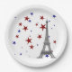 Celebrar el Día de la Bastilla y París con la Torre Eiffel y estrellas rojas y azules.