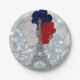 Plato De Papel Torre Eiffel Purpurina Plateada Fiesta Rojo Blanco