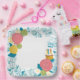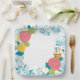 Un plato con encanto, con motivos florales y una deliciosa tarta, perfecto para añadir un toque a tu colección de platos de papel.