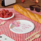 Esta hermosa plato de papel con tema de helado para despedida de soltera está decorado con flores de acuarela y un cono de helado.