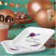 Diseño elegante de despedida de soltera con flores en tonos púrpura con eucalipto y vegetación botánica
