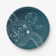 Plato De Papel Tortuga marina hawaiana blanca en una Verde azulad