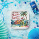 Un caprichoso Navidad recibe una tarjeta con una alegre acuarela de ilustracion de una tortuga marina con un festivo sombrero de Santa Claus y adornada con luces de Navidades relucientes colocadas alrededor de su concha, con un telón de fondo de una palmera que se balancea también iluminada con luces cálidas y un tranquilo océano turquesa. El caparazón de la tortuga está pintado con intrincados patrones de flores tropicales en suaves tonos pastel de coral, lavanda y verde marino, mientras que el océano tiembla con sutiles gradientes de azul y plata, creando una atmósfera tranquila y a la vez festiva. "MERRY CHRISTMAS & HAPPY NEW YEAR" aparece en una letra juguetona con letras a mano en la parte superior de la tarjeta, con el interior ofreciendo un espacio blanco limpio para un mensaje personalizado y un sutil y repetitivo patrón de pequeñas conchas marinas a lo largo del borde inferior para reforzar el tema tropical. El tono general es alegre y alegre, perfecto para enviar cálidos deseos a amigos y familiares durante las vacaciones.