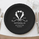 Eleva tu celebración previa a la boda con estos elegantes platos de papel para despedida de soltero. Con un diseño de esmoquin negro y blanco y una silueta sofisticada de corbata de lazo, esta es la decoración definitiva para una noche de chicos formal y de alta gama. Son una forma única de hacer que tu evento sea exclusivamente tuyo. El diseño es totalmente personalizable para incluir el nombre del novio y todos los detalles de tu evento, lo que los hace perfectos para cualquier padrino o planificador de bodas que busque agregar un toque pulido y distintivo a un fin de semana de soltero o una celebración sofisticada.