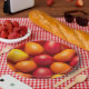 Trendy orange and yellow Easter Eggs Pattern.