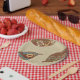 Plato De Papel Tres hojas sobre fondo de textura lineal