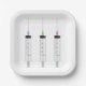Tres jeringas con azul verde y morado. Este diseño parece realmente efectivo en estas placas de papel