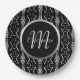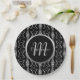 Plato De Papel Triángulos Geométricos Monogramados en Blanco y Ne