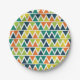 Plato De Papel Triángulos Líneas Naranja Verde Amarillo