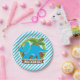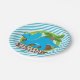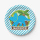 Plato De Papel Triceratops Dinosaur; Sky Blue & White Strips
