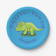 Plato De Papel Triceratops feliz personalizado de dinosaurios