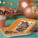 Revierte la emoción en tu próximo bash de Halloween con nuestro cautivador plato de fiesta de papel cuadrado, con una electrizante escena que seguramente encantará a los jóvenes y jóvenes de corazón. Imaginen esto: un carismático hombre lobo montando con confianza una patineta, una calabaza en la mano, todo puesto contra un telón de fondo de palabras festivas de 'Trick Treat'. Este plato es más que solamente vajilla; es una obra maestra artística que da vida al espíritu de Halloween.