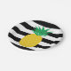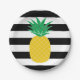 Plato De Papel Tropical de piña rayada negra y blanca