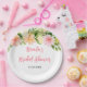 This beautiful and elegant plate features watercolor pink and orange hibiscus flowers and foliage. The text combines handwritten script and serif fonts for a stylish and modern look. This is perfect for a summer tropical bridal shower.