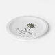 Tropical 30th birthday party paper plate, with a palm trees illustration and elegant script design. With customizable lettering, you add your own information. A great way to add the beach to that special birthday celebration.