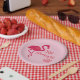 Con una ingeniosa y bonita frase "tu chica flaminGO", estos platos son divertidos para fiestas temáticas flamingo.