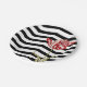 Lo viejo se encuentra con lo nuevo en esta vibrante combinación de una vieja huella de tulipán botánico del siglo XVII colocada sobre un audaz patrón de rayas de chevron en blanco y negro. Los resultados son una combinación maravillosamente dramática. Puede personalizar esta placa con su monograma, nombre u otro texto seleccionando el botón "Personalizar".