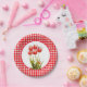 Plato De Papel Tulipán rojo con Gingham
