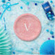 Plato De Papel Tulipán Rosa Acuarela Monogramada
