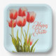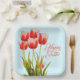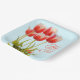 Placas de papel de primavera con tulipanes. Platos de color azul pálido con un montón de tulipanes rojos y blancos con hojas verdes que decoran el centro. Este gran diseño floral te preparará para el clima cálido y las flores florecientes. Utilícelo para una reunión de Pascua, fiesta de cumpleaños de primavera, o por cualquier razón. No hay una redacción que interrumpa el diseño del bonito. Las placas tienen formas redondeadas o cuadradas, con otras opciones de tamaño.