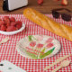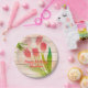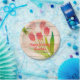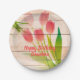 Plato De Papel Tulipanes rojos sobre fondo de madera limpia