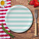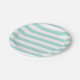 Plato De Papel Turquesa Claro y Rayas Horizontales Anchas Blancas
