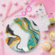 Plato De Papel Turquesa, Oro, Marble Fluid Art