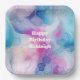 Plato De Papel Turquoise Aqua Purple Pink Marble Cumpleaños