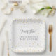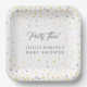 Twinkle Platos fiestas Baby Shower Little Star en gris y amarillo / oro. Un tema de ducha para bebés neutro y de género. Guión y estrellas en un marco confetti.
