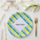 La bandera ucraniana azul y amarilla, con la palabra UCRANIA debajo, en los colores de la bandera. El diseño de la placa de papel está embaldosado para el efecto artístico. Un espacio blanco de cuadrados escrupulosamente sirve de lugar a tu nombre para un toque personalizado. O,personalizar añadiendo el nombre de otra persona.