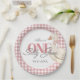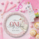 ¡Tu imbécil se está volviendo uno! Celebra tu primer cumpleaños de tus niñas pequeñas con nuestro diseño de ganso rosado y tonto. El diseño se compone de arcos, gingham color agua rosa y una oca dulce.