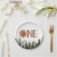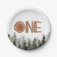 Plato De Papel Un Árbol verde rústico primer cumpleaños