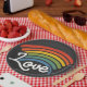 Un arcoiris de amor, este diseño presenta un arcoiris colorido con la palabra "amor".
