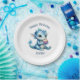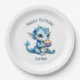 Plato De Papel Un bebé dragón azul lindo comiendo un pastel
