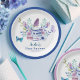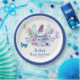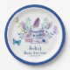 Un bebé está preparando fiestas de té con placas de papel para bebé. Esta ducha neutra de género incluye tés con flores moradas, azules y rosas y mariposas con un macaron. Un perfecto tema rústico de género neutro para el fiesta de té con ducha para bebés.