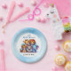 Platos de papel de papel para bebés con temática de jungla animal en el zoológico. El elefante personalizado, la jirafa, el león, el tigre y la jirafa con bonito color verde follaje. Esto puede ser para un niño, un chica o una ducha de bebé neutral en cuanto a género.