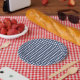 Plato De Papel Un conejo es un cumpleaños de Gingham azul