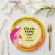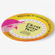 ¡Hacerla sentir como la estrella! Celebra sus primeros bofetadas de cumpleaños con estos platos de papel, que tienen un delfín rosado resplandeciente contra el cálido y luminoso fondo de un sol tropical! Personalice con el nombre, edad y hasta tres mensajes de su hijo. Diseño © W.H. Sim. Ver más en zazzle.com/expressionsoccasions