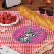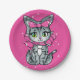 Plato De Papel Un gatito kawaii con fondo rosado Purpurina