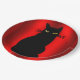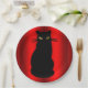 Plato De Papel Un gato negro de Halloween espeluznante en rojo
