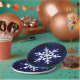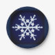 Placas de papel en un copo de nieve gigante, detallado y cristalino contra fondo azul índigo oscuro